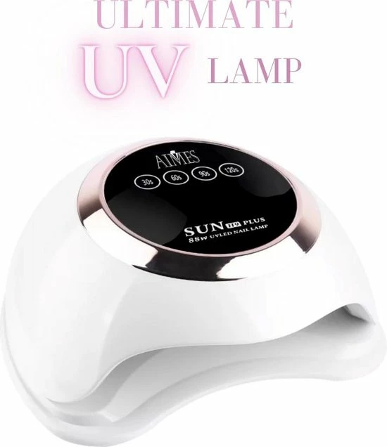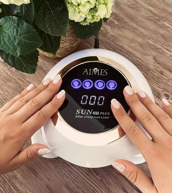 De nieuwe nageldroger van Aimes heeft 30 krachtige 88 Watt LED UV-lampen. Hierdoor zullen de nagels van je handen of voeten binnen no time droog en uitgehard zijn. De lamp is voorzien van bewegingssensoren waardoor de nageldroger automatisch aan en uit wordt gezet en is er ruimte om twee handen naast elkaar te doen. Je verpest dus niet meer je net gelakte nagels aan knopjes of gebrek aan ruimte! Dankzij de 4 timers van 30, 60, 90 en 120 seconden kan je zelf bepalen wat voor jou het prettigst werkt. Daarnaast kan je niet om het mooie design van de lamp heen waardoor het iedere keer een feestje is om je nagels te doen!