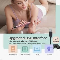 Dankzij het compacte model en het meegeleverde reistasje kun je de mani- en pedicure set overal gemakkelijk mee naar toe nemen! De krachtige accu die zo’n 4 uur lang mee gaat op 1 lading stelt je in staat om de nagelvijl over te kunnen gebruiken zonder afhankelijk te zijn van een stroombron en een snoer. Als de nagelvijl leeg is, kun je deze gemakkelijk opladen in 90 minuten met de meegeleverde usb-c kabel.