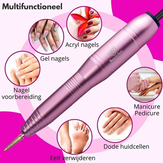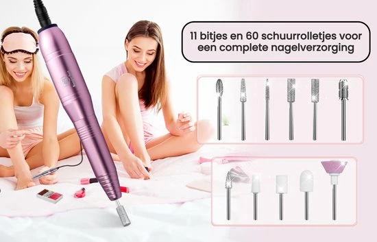 Dankzij de complete set met 11 multifunctionele bitjes, 4 accessoires (Glazen nagelvijl, Nagelstofkwastje, Bokkepoot en Nagelriem verwijderaar) 60 schuurolletjes voor het mandrel bitje is de set geschikt voor alle soorten (kunst)nagels en hardnekkig eelt.