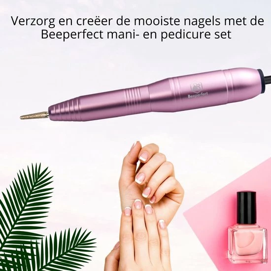 Haal met de Beeperfect? Mani- en pedicure set je eigen nagelsalon in huis! De krachtige elektrische nagelvijl is dankzij het bedieningspaneel aan de kabel helemaal naar wens in te stellen tussen 500 en 20.000RPM. Dankzij de 11 meegeleverde bitjes, 60 schuurrolletjes en 4 handige accessoires kun je je nagels frezen, polijsten, glad en glanzend te maken, maar ook hardnekkig eelt mee verwijderen. Geniet van een ergonomisch en kwalitatief design van hoogwaardig aluminium, waardoor de nagelvijl niet snel heet wordt en het goed in de hand ligt. Dankzij de usb-aansluiting en het meegeleverde reistasje kun je de nagelvijl overal gebruiken en neem je het gemakkelijk met je mee!