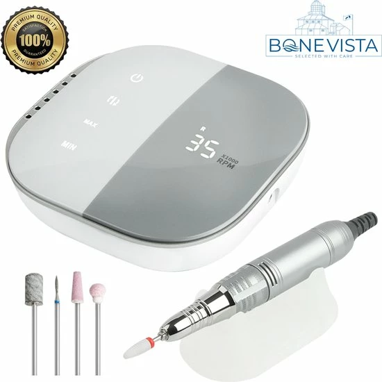 De Bone Vista NagelFrees is een van de nieuwst ontwikkelde nagelvrezen op de markt. Hierdoor is eigenlijk over alle wensen nagedacht. Zo heeft de frees een motor die 35000RPM kan genereren, is het volledig touchpad bestuurbaar, zit er een reverse Option op en zitten de hulpstukken magnetisch vast op het apparaat zodat je deze gemakkelijk kunt pakken tijdens het werk! De ideale oplossing voor iedereen die zijn nagels professioneel aangepakt wilt hebben dus.