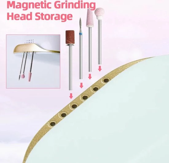 Als je bezig bent met iemand zijn nagels, dan wil je natuurlijk niet afgeleid zijn. Volle focus is uitermate belangrijk, door de speciale magnetische technologie kan jij je hulpstukken en vrezen gemakkelijk in het apparaat stoppen en zijn ze altijd binnen handbereik!