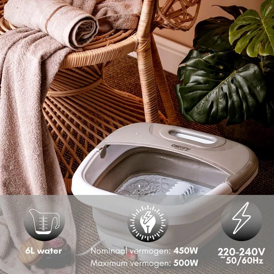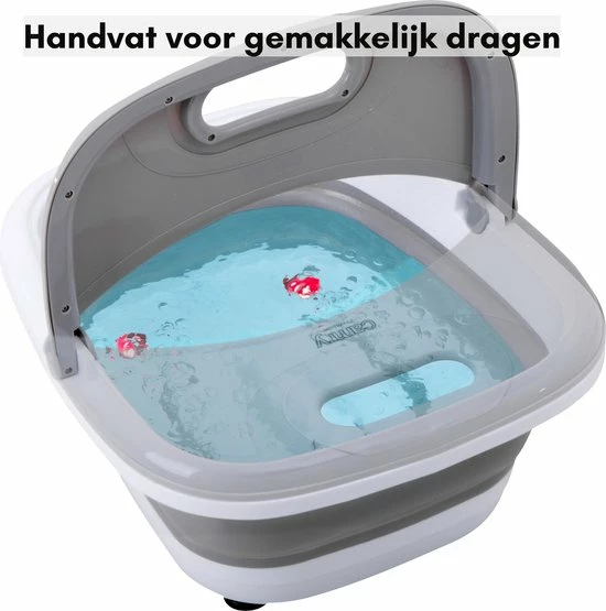 Het multifunctioneel voetmassageapparaat met draagbeugel wordt gebruikt voor ontspanning en gezondheidsdoeleinden. Het maakt verschillende soorten massage mogelijk: bubbel, vibrerend, droog en warmte. Door de temperatuur van het water te handhaven, kan een comfortabele massage worden gegeven gedurende de tijd dat het water normaal zou zijn afgekoeld. Het massageapparaat heeft een positief effect op de bloedsomloop van de voeten, en bovendien worden de zenuwen op de voetzolen ge?indigd, wat een weldadig effect heeft op het hele lichaam. Het geeft je ook de kans om te ontspannen na een dag vol spanning of na het lopen in oncomfortabel schoeisel.