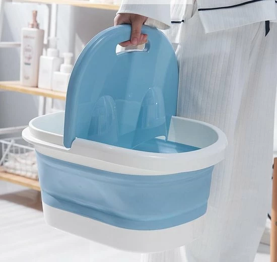Een voetenbad werkt ontspannend en stress verminderd, zorgt voor een betere doorbloeding van uw hele lichaam en kan eelt op uw voeten verminderen of voorkomen. Dit opvouwbare voetenbadje is uitgerust met massagerollers en massagebollen in de vloer van het voetenbad, die de doorbloeding stimuleren en zorgen voor dat ontspannen gevoel wat u ook in een spa beleeft.