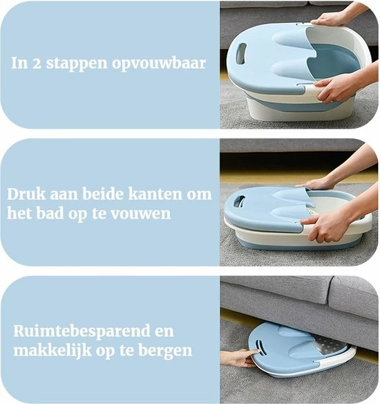 Met dit voetenbadje kunt u snel een klein verwenmoment voor uzelf cre?ren, omdat hij makkelijk is op te zetten en te vullen. Na gebruik is hij ook weer gemakkelijk op te bergen. Omdat het voetenbadje opvouwbaar is, neemt hij weinig ruimte in beslag in de badkamer of bergruimte en is hij ook als u op reis gaat makkelijk mee te nemen in de koffer.