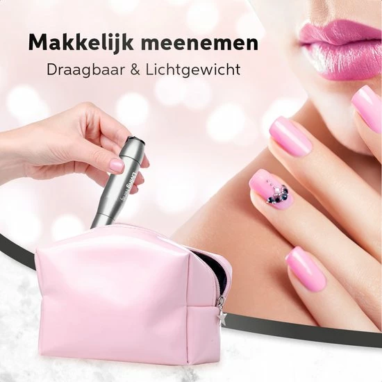 - Stil: Veel nagelfrezen maken een gigantisch lawaai. Onze frees daarentegen is erg stil zodat je niemand ongewenst wakker maakt!
