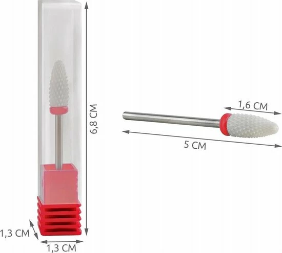 Deze hoogwaardige keramische frees is gemaakt van zirkoniumoxide en roestvrij staal en heeft de vorm van een kegel met een gemiddelde gradatie. Het freesopzetstuk helpt bij het voorzichtig en effectief verwijderen van gel-, hybride- of acrylnagellak van de nagelplaat zonder trillingen te veroorzaken en de nagellaag te beschadigen. De ideale vorm en het juiste aantal tanden dragen bij aan comfort en snelheid van werken. De frees is zowel zeer veili als effici?nt. Tijdens het werk draait het deze van links en rechts, draagt hij ??geen warmte over en veroorzaakt geen onaangenaam gevoed. De kegel kan na gebruik wordenn gedesinfecteerd en gesteriliseerd.