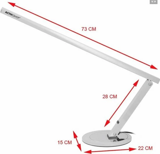 – fluorescentAfmetingen:– Lengte lamp 73cm- Hoogte pootje 28cm