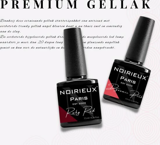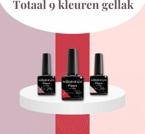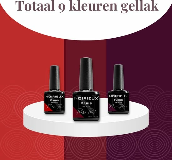 De Noirieux gellak kleuren zijn samengesteld door een professional en zijn de meeste trendy gellak kleuren van dit jaar. De set bestaat uit verschillende ‘nude’ gellak kleuren en de mooiste gellak tinten rood en paars. Deze gellak kleuren geven je nagels een prachtige uitstraling.