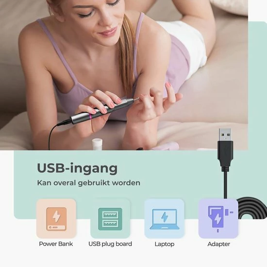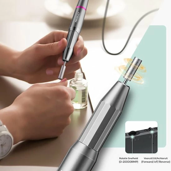 De elektrische nagelvijl set van ProductPlanets is niet alleen geschikt voor natuurlijke nagels, maar ook voor acryl- en gelnagels. Ook met weinig ervaring heb je de elektrische nagelvijl machine zo onder de knie. De 12W motor maakt dat de nagelfrees niet heet wordt, weinig geluid maakt en weinig vibreert. Bovendien kan je door het 1,50 meter lange snoer zitten waar je wilt. Pauzeer wel na elke 20 minuten om je nagelfrees wat rust te geven.