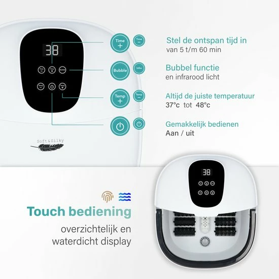Met het voetenbad van Soft & Silky komen niet alleen jouw voeten toe aan rust, maar ook jij zelf na een lange dag. Ontspan en verbeter jouw lifestyle! Verlaag je stress en andere lichamelijke klachten, verbeter jouw eigen nachtrust en bevorder de celregeneratie en bloedcirculatie. Met het infrarood systeem wordt er liefdevol voor jouw spieren en gewrichten gezorgd en met de magnesium vlokken cadeau kun jij direct alles eruit halen wat erin zit! De 10 roterende Tai Chi rollen zorgen ervoor dat de voeten geprikkeld worden en er een verbetering van onder anderen de bloedcirculatie kan ontstaan.
