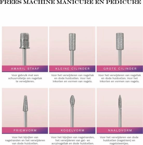 Voor het verwijderen van nagellak en dode huidcellen. Voor het inkorten en vormen van nagels - Kleine cilindervorm
