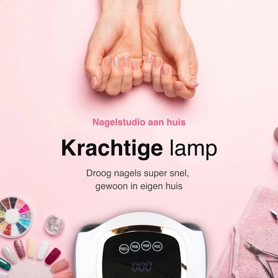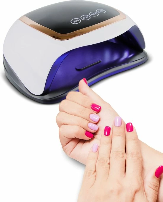 De nagellamp is voorzien van een intelligente sensor, waardoor je geen knopjes in hoeft te drukken met je natte nagels. Je stopt gewoon je hand erin en de lamp springt aan, als je je hand eruit haalt dan zal de lamp weer uitgaan. De nageldroger heeft vier automatische timers (30, 60, 90, 120 seconden). Op het LCD display zie je precies hoeveel seconden je nog moet drogen.